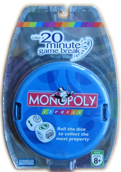 Monopoly Express is a dice game based on the classic Monopoly board game. It was released in 1991 and designed by Garrett J. Donner and Michael S. Steer. The game is published by Hasbro, Parker Brothers, Tonka Corporation, and Waddingtons. Monopoly Express is a quick-playing version of the original Monopoly, focusing on dice rolling and set collection mechanics.