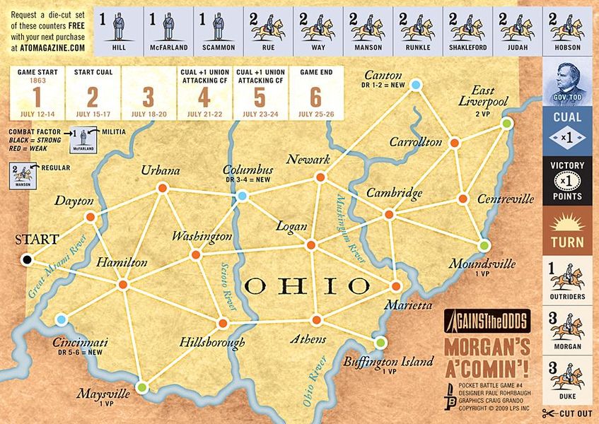Morgan’s a’ Comin’! is a board game that was released in 2009 and designed by Craig Grando. The game is set during the American Civil War and focuses on the exploits of Confederate General John Hunt Morgan as he leads his cavalry on daring raids behind enemy lines.