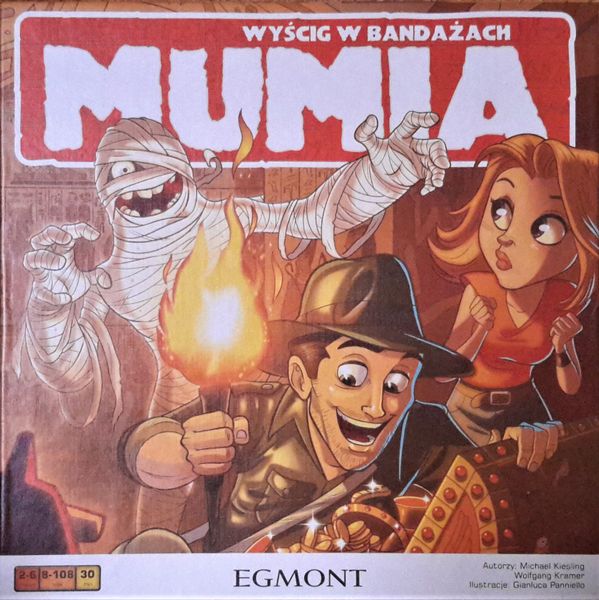 Mumia: Wyścig w bandażach, which translates to Mummy: Race in Bandages, is a board game that was released in in 2014. Designed by Gianluca Panniello and illustrated by Egmont Polska, the game falls under the categories of Ancient, Animals, and Humor. With a runtime of about 30 minutes, Mumia: Wyścig w bandażach is suitable for players aged 8 and above.