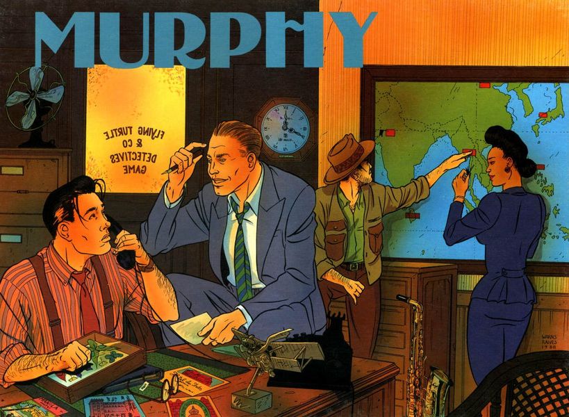 Murphy, a deduction and murder/mystery board game, was released in 1989 by Flying Turtle Games. It is designed for 2-6 players, with a runtime of about 60 minutes. The game is recommended for ages 12 and up.