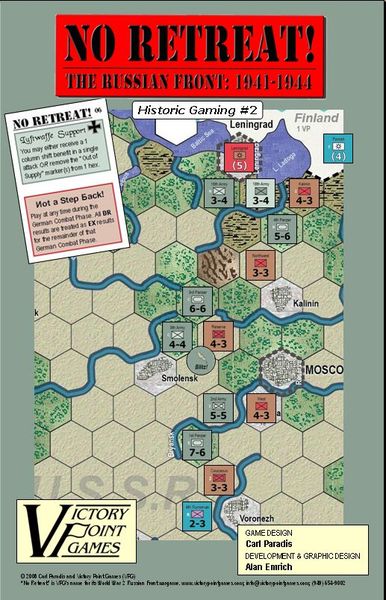 No Retreat!: The Russian Front 1941-1944 is a board game that focuses on the Eastern Front of World War II, specifically the conflict between the Axis powers and the Soviet Union. Designed by Alan Emrich and first released in 2008, the game provides players with a strategic and tactical simulation of this brutal and pivotal theater of war. With its detailed map, historical scenarios, and immersive gameplay mechanics, No Retreat! offers a challenging and engaging experience for wargaming enthusiasts.