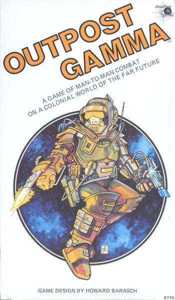 Outpost Gamma is a science fiction wargame that was released in 1981 by Dwarfstar Games. It was designed by Frank Cirocco and David Helber, and features grid movement, line of sight mechanics, and dice rolling. The game is set on a distant planet where two players compete to build the most successful outpost.