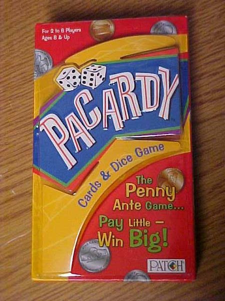 Pacardy is a card game released in 2005 by Patch Products. It is a party game that combines elements of card games and dice rolling. The game is designed for 2 to 6 players, with a runtime of around 30 minutes. It is suitable for players aged 8 and above.
