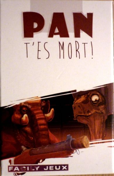 Pan T’es Mort is a card game designed by Mathieu Collangettes and released in in 2013. The game is known for its fast-paced gameplay and player elimination mechanics. The game can be played with 2 to 6 players and is recommended for ages 8 and up.