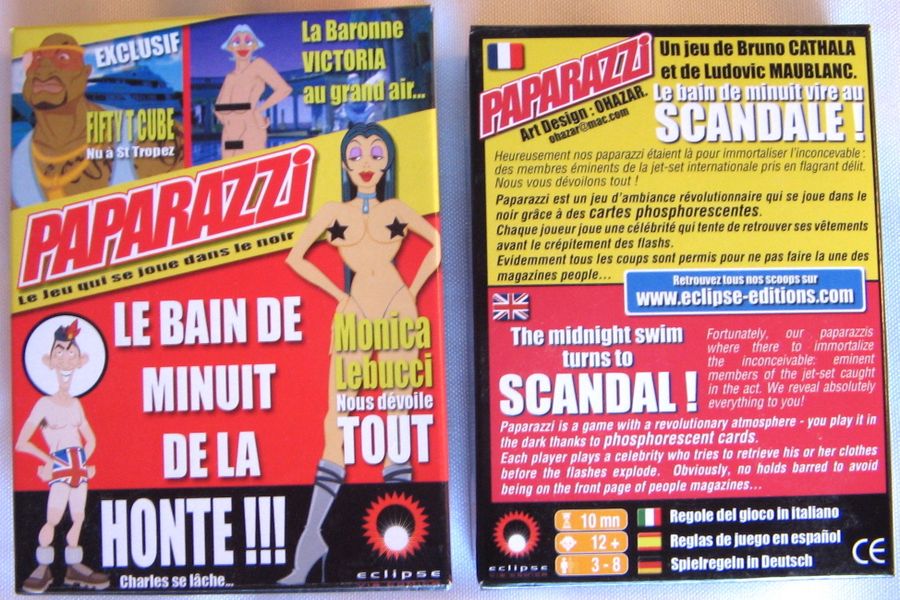 Paparazzi is a party game released in 2006, designed by Rodolphe Lupano. The game is meant for 2-8 players, with the best experience being with 6-8 players. The game features glow-in-the-dark components, adding an exciting twist to the gameplay. Players take on the role of paparazzi trying to capture the best photos of celebrities at a red carpet event.