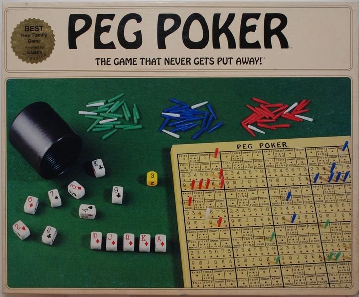 Peg Poker is a board game that was released in 1993 by Wheeler Games. It is a dice game that involves rolling dice and building patterns to score points. The game is designed for 1-4 players, with a runtime of around 60 minutes. Peg Poker is suitable for players aged 8 and above and falls under the category of dice games.