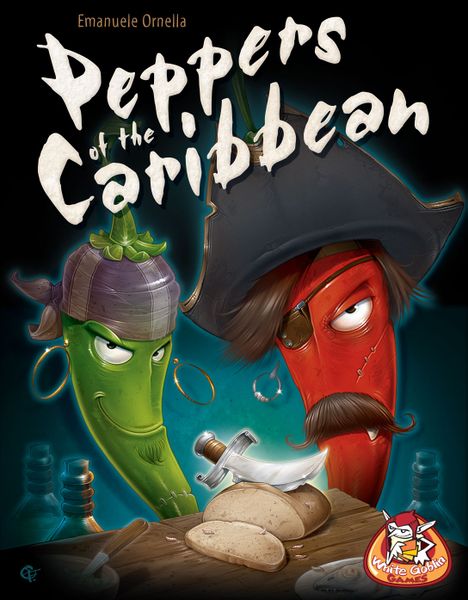 Peppers of the Caribbean is a card game themed around pirates and set collection, designed by Oliver Freudenreich and released by White Goblin Games in in 2018. The game is suitable for 2 to 4 players, aged 8 and up, with a runtime of around 30 minutes. Players take on the role of pirates collecting various types of hot peppers to trade and gain points.