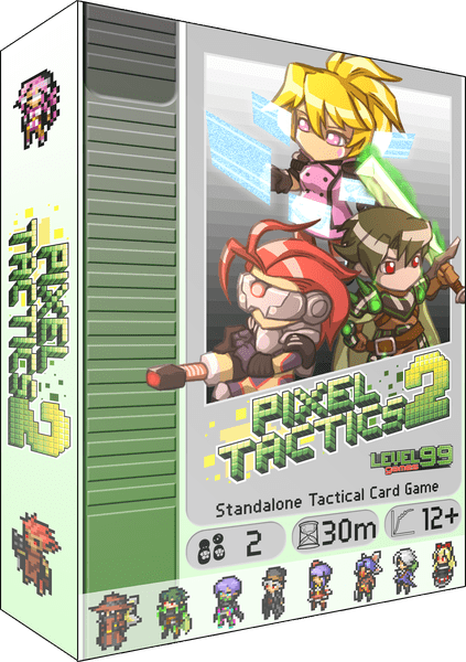 Pixel Tactics 2 is a card game designed by D. Brad Talton, Jr. and published by Level 99 Games in in 2013. It is a sequel to the original Pixel Tactics game and features a video game theme with fantasy elements. The game is designed for 2 players and has a runtime of about 45 minutes. It is recommended for players aged 12 and above.