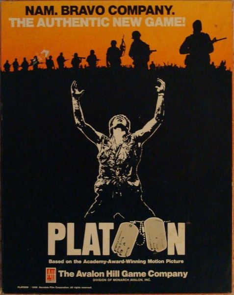Platoon is a board game based on the 1986 war film of the same name, which depicts the Vietnam War. The game was released in the same year as the film and is designed for 2 players. It falls under the category of Movies/TV/Radio theme, Vietnam War, and wargame.