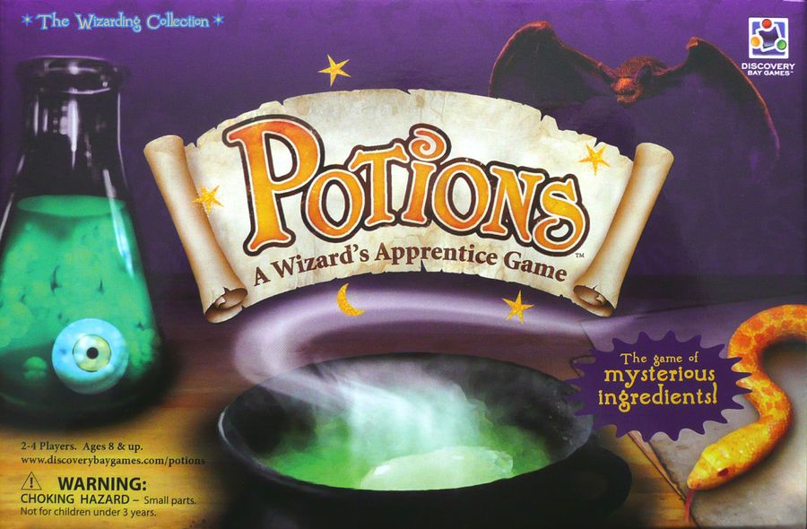 Potions is a card game released in 2008 by Discovery Bay Games. It is designed for 2-4 players and has a recommended age of 8 and up. The game falls under the category of card games and involves mechanics such as hand management and set collection.