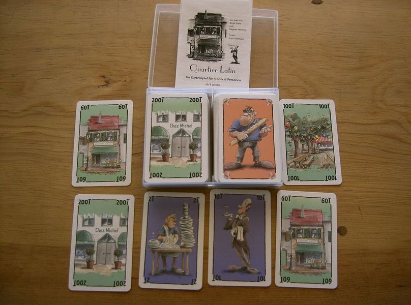 Quartier Latin is a board game released in 1997, designed by Doris Matthäus and illustrated by Daggit Games. It falls under the category of card games and fighting games, with a team-based gameplay mechanism. The game is designed for 4-6 players and has a runtime of 45 minutes.