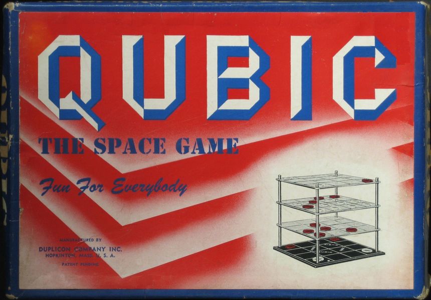 Qubic is an abstract strategy board game that was first released in in 1947. It was designed by Don Cornish, Howard Nelson Moore, and Rolfe L. Pottberg. The game involves players strategically placing pieces on a grid in order to create a winning pattern.
