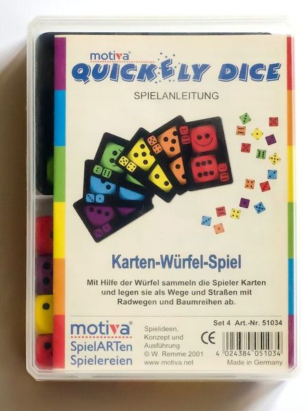 Quickely Dice is a card game that was released in 2001 by the designer Motiva. It is a fast-paced game that involves dice rolling and card matching. The game is suitable for 2 to 6 players and has a runtime of about 60 minutes.