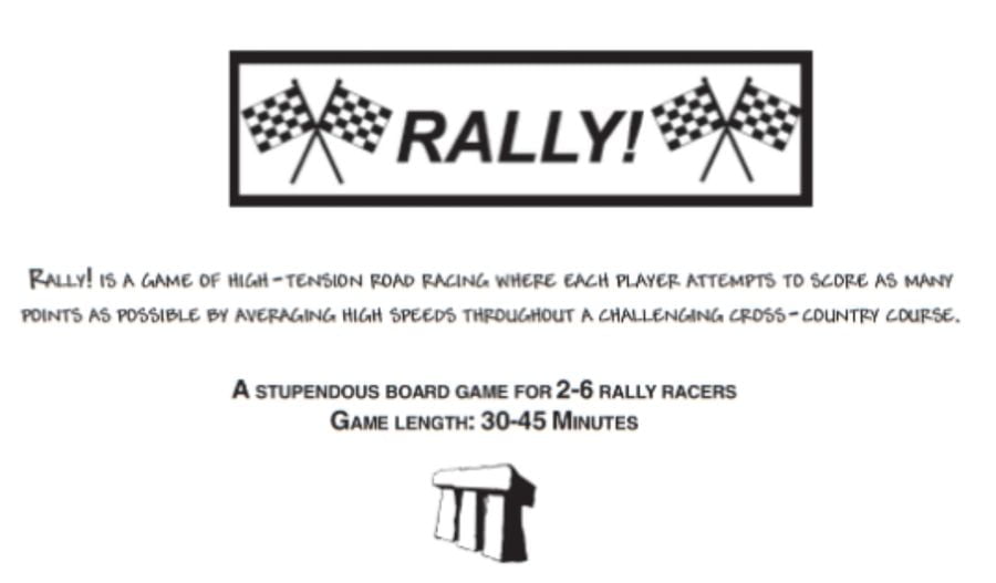 Rally! is a board game released in 2001 by Mythrole Games. It is a racing game designed for 2-6 players, where players compete to be the first to cross the finish line. The game incorporates elements of push-your-luck mechanics, adding an exciting twist to traditional racing games.