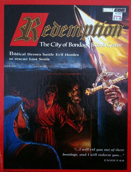 Redemption: City of Bondage is a Christian-themed board game designed by Cactus Game Design and published by Talicor/Aristoplay in in 1996. The game is set in the city of Bondage, where players take on the roles of Christian warriors fighting against demonic forces to redeem lost souls and bring them to salvation.