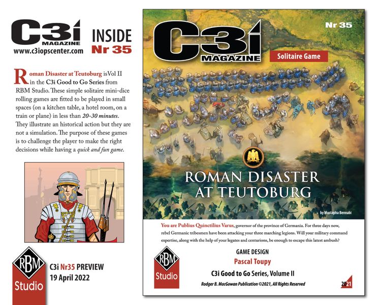 **Roman Disaster at Teutoburg** offers a quick and engaging experience for solo players. It is designed to be played in short intervals, making it ideal for lunch breaks or travel. The game challenges the player to make strategic decisions within a limited timeframe, providing a fun and historical context without the complexity of a full-scale wargame.