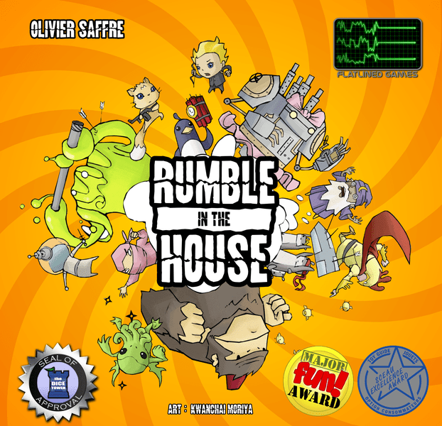 Rumble in the House is a board game released in 2011 by Flatlined Games. Designed by Julie Saffre and featuring artwork by Kwanchai Moriya, this game falls under the categories of bluffing, deduction, fighting, and humor party game. With a runtime of about 20 minutes, it is suitable for players aged 8 and above, accommodating 3 to 6 players.