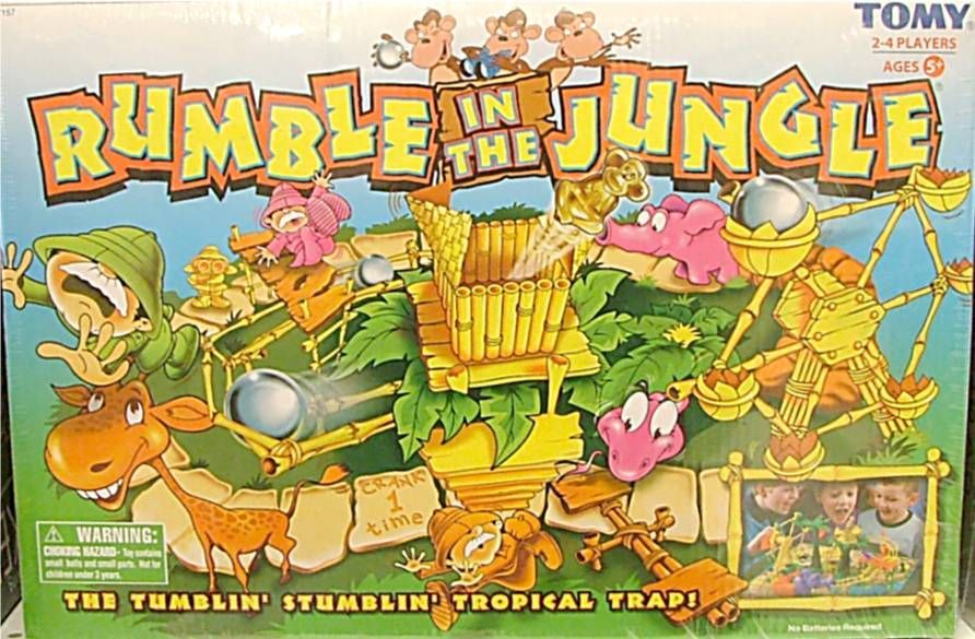 Rumble in the Jungle is a children’s board game released in in 2004. Designed for 2-4 players, this game involves rolling dice and moving around the board. The artwork is done by Crown & Andrews Ltd. and Tomy.
