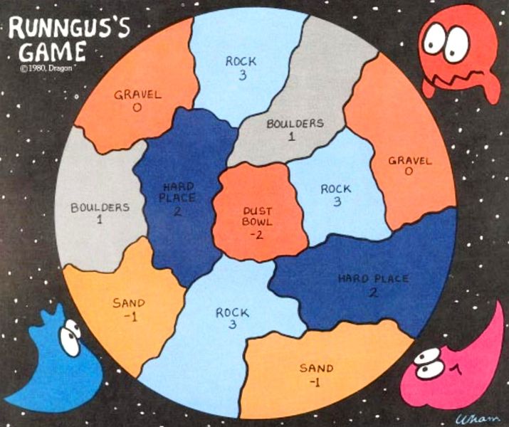Runngus’ Game is a unique action/dexterity board game that was released in 1980 by Tactical Studies Rules (TSR). Designed and illustrated by Tom Wham, this game is part of the Snits series featured in Dragon Magazine. It is suitable for 1-3 players, with a quick runtime of 10 minutes, making it a fun and fast-paced game for players of all ages.