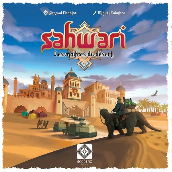 Sahwari is a board game designed by Miguel Coimbra, known for his work on games like Small World and 7 Wonders. The game was released in 2023 and is set in an Arabian theme, focusing on economic strategies, exploration, and territory building. The game features beautiful artwork by JOODINI Editions and is published by an unnamed publisher.