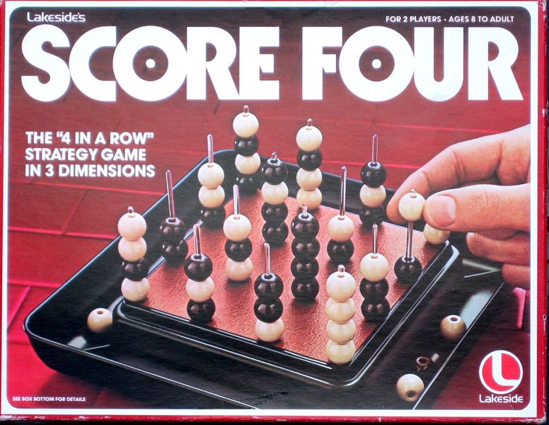 Score Four is an abstract strategy board game that was released in in 1967. It was designed by H. Heller and A. P. Nienstaedt, with artwork by Manfred Burggraf. The game is best played with 2 players, although it can accommodate up to 4 players. Score Four is a game of pattern building, pattern recognition, and tile placement, where players aim to be the first to create a row of four of their colored tiles in any direction.