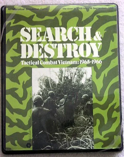 Search & Destroy: Tactical Combat Vietnam – 1965-1966 is a board game released in 1975, designed by Redmond A. Simonsen and published by SPI (Simulations Publications, Inc.). It falls under the category of modern warfare and focuses on the Vietnam War. The game is designed for 2 players, with a runtime of 120–240 minutes and is recommended for ages 12 and up. The game uses mechanisms such as dice rolling, grid movement, hexagon grid, line of sight, and movement points to simulate tactical combat in the Vietnam War.