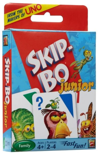 Skip-Bo Junior is a children’s card game that was released by Mattel, Inc. in in 2003. It is a simplified version of the classic Skip-Bo game, designed for younger players aged 4 and above. The game follows the same basic gameplay mechanics as the original Skip-Bo, but with easier rules and a shorter playtime.