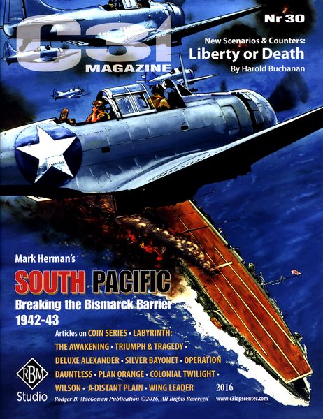 South Pacific: Breaking the Bismarck Barrier 1942-1943 is a strategic board game that focuses on the naval campaigns in the South Pacific during World War II. Players take on the roles of either the Allied or Japanese forces as they battle for supremacy in the region. The game is designed by Rodger B. MacGowan and Mark Simonitch, with artwork by RBM Studio. It was released in 2016 and is recommended for players aged 12 and above.