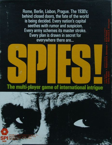 Spies! is a board game released in 1981, designed by Redmond A. Simonsen. The game is set during World War II and focuses on the theme of negotiation and espionage. Players take on the roles of secret agents trying to outwit and outmaneuver their opponents in a battle of wits and strategy.
