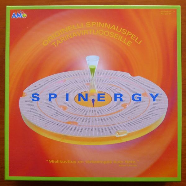Spinergy is a party game released in 2000, designed by Amo Oy, Character Games LTD, and Gnugames. It is a word game that is suitable for 2 to 6 players, with a recommended age of 15 and above. The game involves storytelling and is known for its fast-paced gameplay and competitive nature.