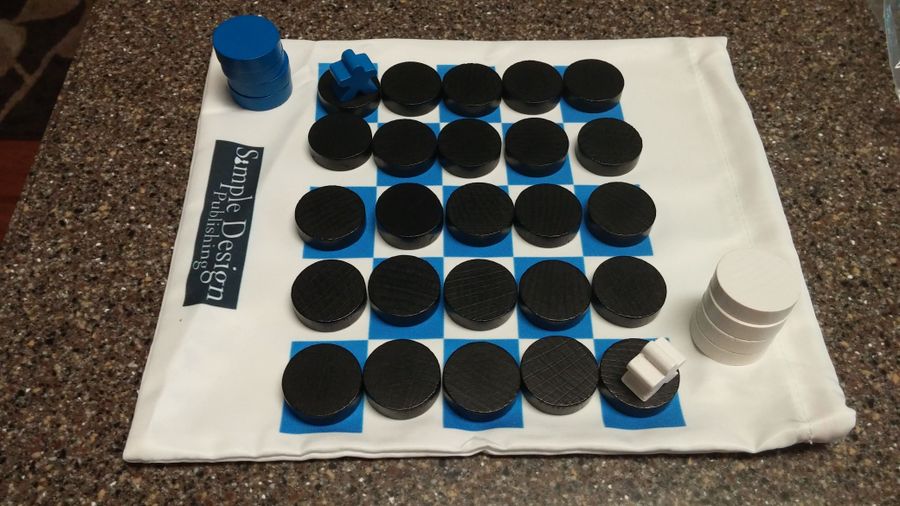 To set up Stac, place the 5×5 grid game board in the middle of the playing area. Each player chooses a pawn and places it on the board according to the starting rules. The stacks or blocks are placed within reach of the players.