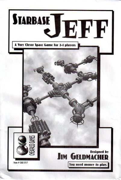 Starbase Jeff is a tile placement board game that was released in 1998 by designer Jim Geldmacher and Cheapass Games. It falls under the categories of Abstract Strategy, Card Game, Print & Play, and Science Fiction. The game is designed for 2-4 players, with a recommended age of 10 and above.