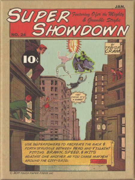 Super Showdown offers a dynamic and competitive experience for two players. The game involves strategic planning and a bit of luck, as players navigate the city-grid, engage in battles, and manage their cards. The game’s design encourages players to balance their character’s strengths and weaknesses to outmaneuver their opponent.