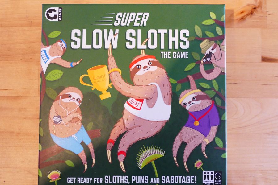 Super Slow Sloths is a board game released in 2019, designed for 3-6 players with a runtime of 20-30 minutes. The game falls under the racing category, where players move through a deck to advance their sloth characters towards the finish line.