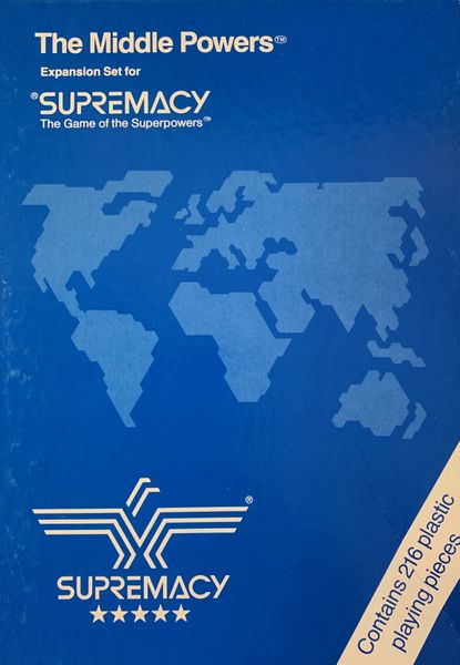 Supremacy: The Middle Powers is a board game that was released in 1988 by Supremacy Games. It falls under the categories of Economic, Expansion for Base-game, Modern Warfare, and Wargame. The game is designed for 3-8 players, with a runtime of approximately 120 minutes. Players take on the roles of various countries vying for supremacy in a world conflict setting.