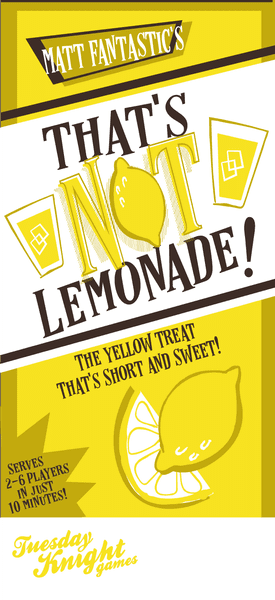 That’s Not Lemonade is a card game designed by Kelsey Lynn Cretcher and published by Tuesday Knight Games in in 2018. The game is all about pushing your luck and risking it all to avoid drinking something that definitely isn’t lemonade.