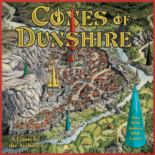 The Cones of Dunshire is a fictional board game that was featured in the TV show Parks and Recreation. The game gained a cult following among fans of the show due to its complex rules and ridiculous gameplay mechanics. In 2015, Mayfair Games, the real-life board game company, created an actual version of The Cones of Dunshire based on the fictional game from the show.