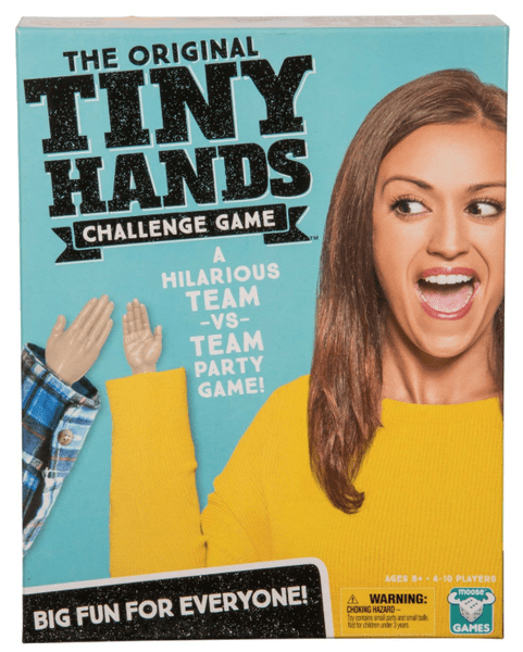 The Original Tiny Hands Challenge Game is a hilarious party game that was released in in 2017. Designed by Moose, this game is all about performing silly challenges using the tiny hands provided in the box. It is a team-based game that requires acting, betting, and bluffing skills to win.