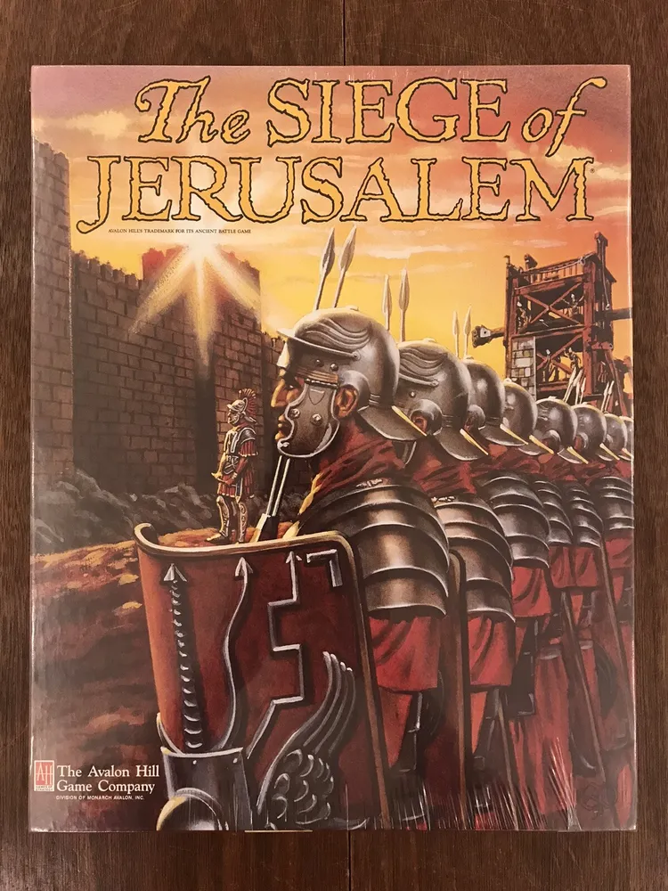The Siege of Jerusalem is a board wargame that simulates the Roman attack on Jerusalem by Cestius Gallus in 70 A.D. during the First Jewish Revolt. The game was designed by Stephen Weiss and Fred Schacter and published by Historical Perspectives in 1976 in a ziplock bag. The game was subsequently bought by Avalon Hill, revised, and republished in 1989 as a boxed set. The game is significant because it allows players to experience the historical event and make strategic decisions as either the besieging Roman army or the Jewish defenders.