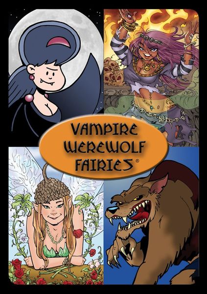 Vampire Werewolf Fairies is a card game released in 2011, designed by Phil Foglio, John Kovalic, Randy Milholland, Terry Moore, and Neko Pilarcik. The game is published by Gozer Games, LLC and falls under the categories of comic book, fantasy, fighting, and humor. With a runtime of 20 minutes, it is suitable for 2 to 6 players aged 13 and above.