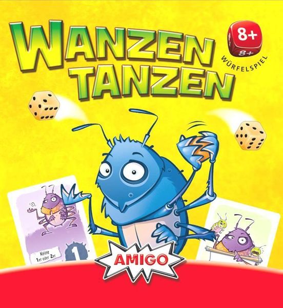 Wanzen tanzen, designed by Oliver Freudenreich, was released in 2012 by AMIGO. It is a card game that incorporates dice rolling and push your luck mechanics. The game is suitable for 2-4 players, aged 8 and above, with a runtime of approximately 30 minutes.