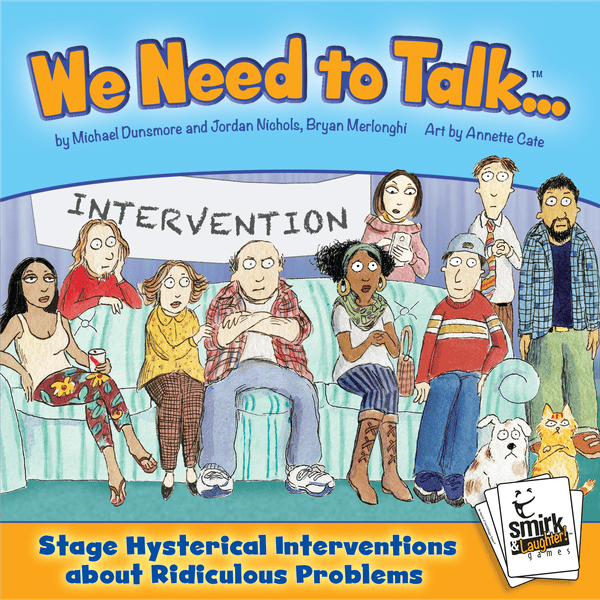 We Need to Talk is a party game released in 2019 designed by Annette Cate and published by Smirk & Laughter Games. It is a deduction game with a humorous twist, where players take on different roles with asymmetric information to uncover each other’s secrets.