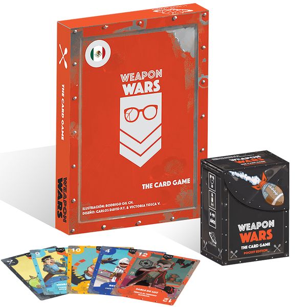 Weapon Wars is a card game released in 2019, designed by Rodrigo Gil and published by Lodus Games. The game is designed for 2–6 players, with a recommended player count of 4–5 players. It falls under the categories of Card Game, Party Game, and has a Video Game Theme.