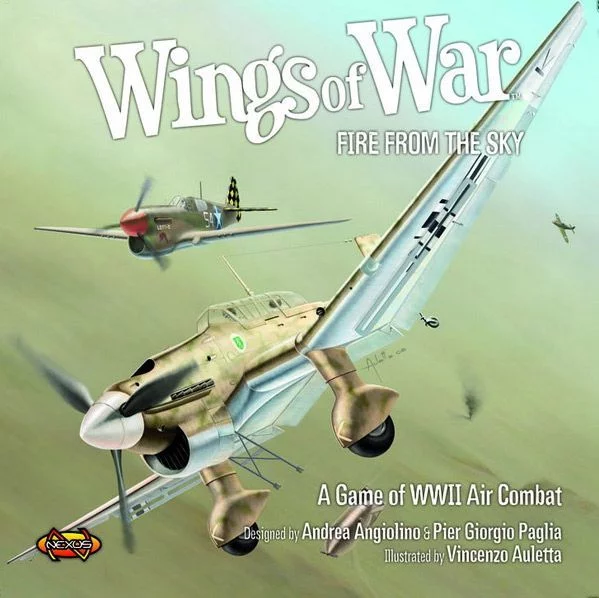 Wings of War: Fire from the Sky is a card-based wargame set during World War II, where players take on the role of pilots controlling fighter planes in aerial combat. The game was designed by Andrea Angiolino, Vincenzo Auletta, and Fabio Maiorana, and it was first released in in 2009. With a focus on simulation and action queue mechanics, Wings of War provides an immersive experience for players looking to engage in strategic dogfights.