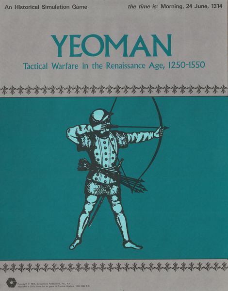 Yeoman: Tactical Warfare in the Renaissance Age, 1250-1550, is a board game released in 1975, designed by Redmond A. Simonsen and featuring artwork by SPI (Simulations Publications, Inc.). The game is set in the Renaissance period, specifically between the years 1250 to 1550, focusing on tactical warfare and strategy.